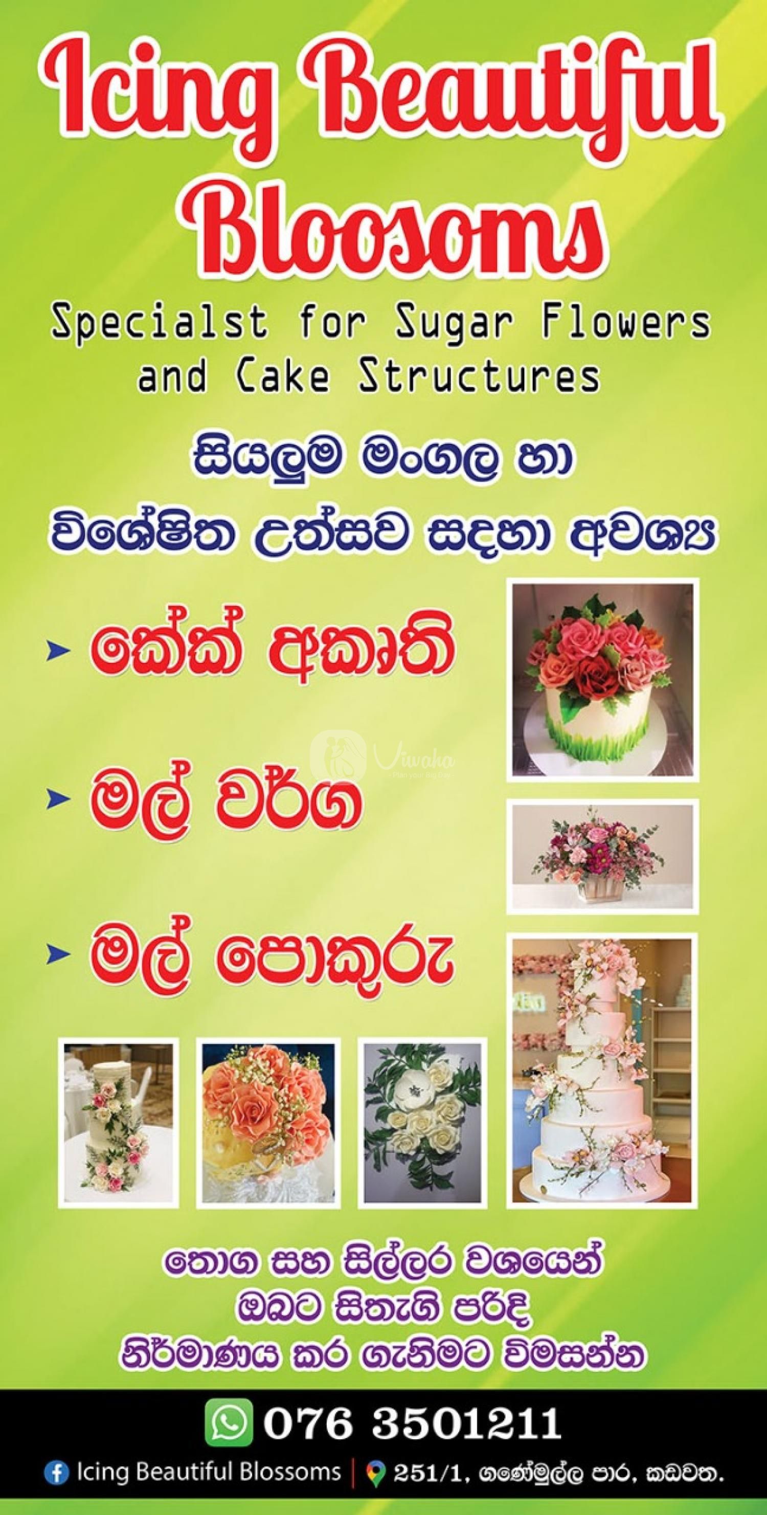 all types of cake structures and Icing sugar flowers available / Delivery available to Location, Friendly service until finished the event,