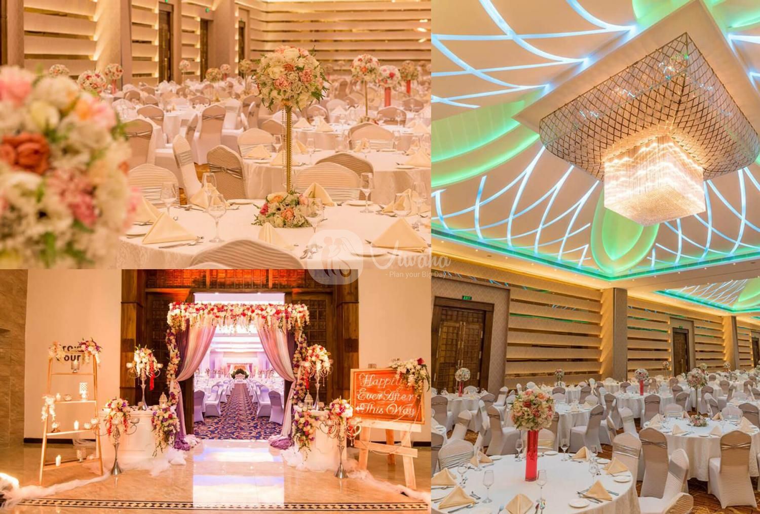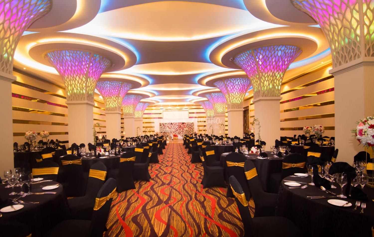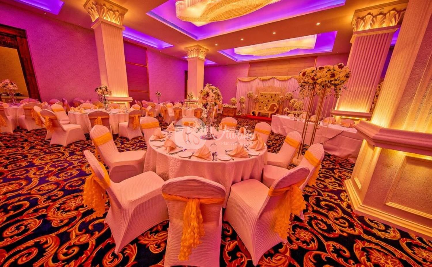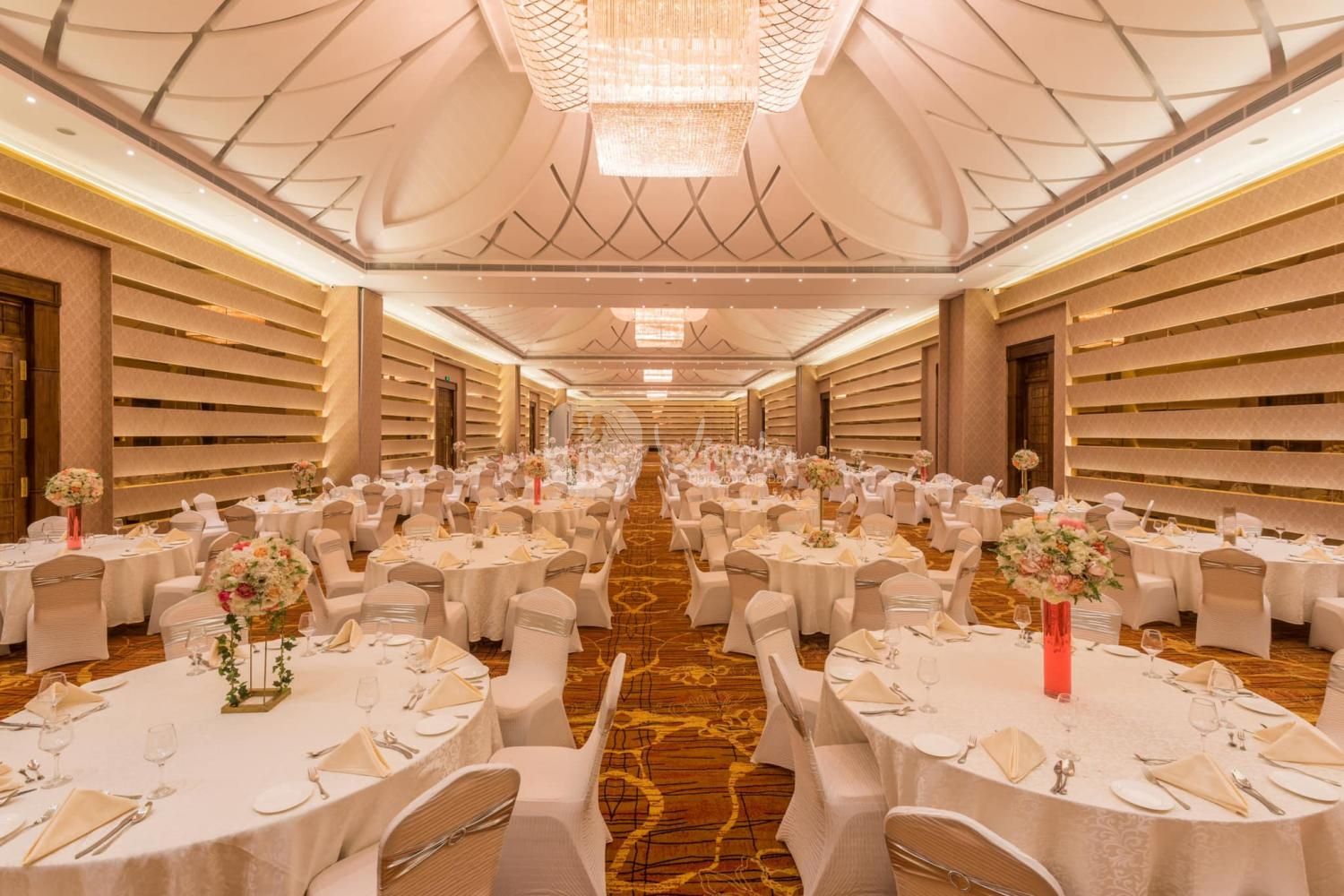 The Crown Court is characterized by smooth Corinthian pillars, high ceilings, and crystal chandeliers. The extensive hall can also be partitioned as per your requirements.