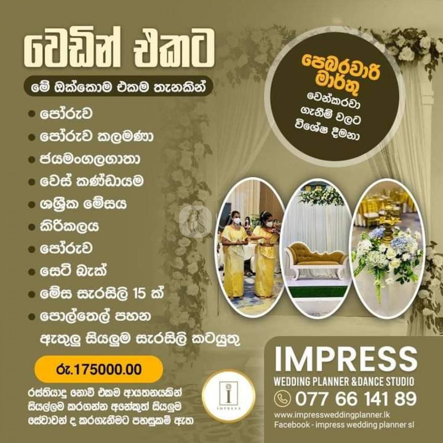175000.00 සියලුම සේවාවන් ටික එකම තැනකින් පහසු මිලකට අදම වෙන්කරවා ගන්න මෙම මිලගනන් මැයි ,ජුනි , ජූලී වෙන්කරවා ගැනීම් සදහා පමණි (කොන්දේසි සහිතයි)