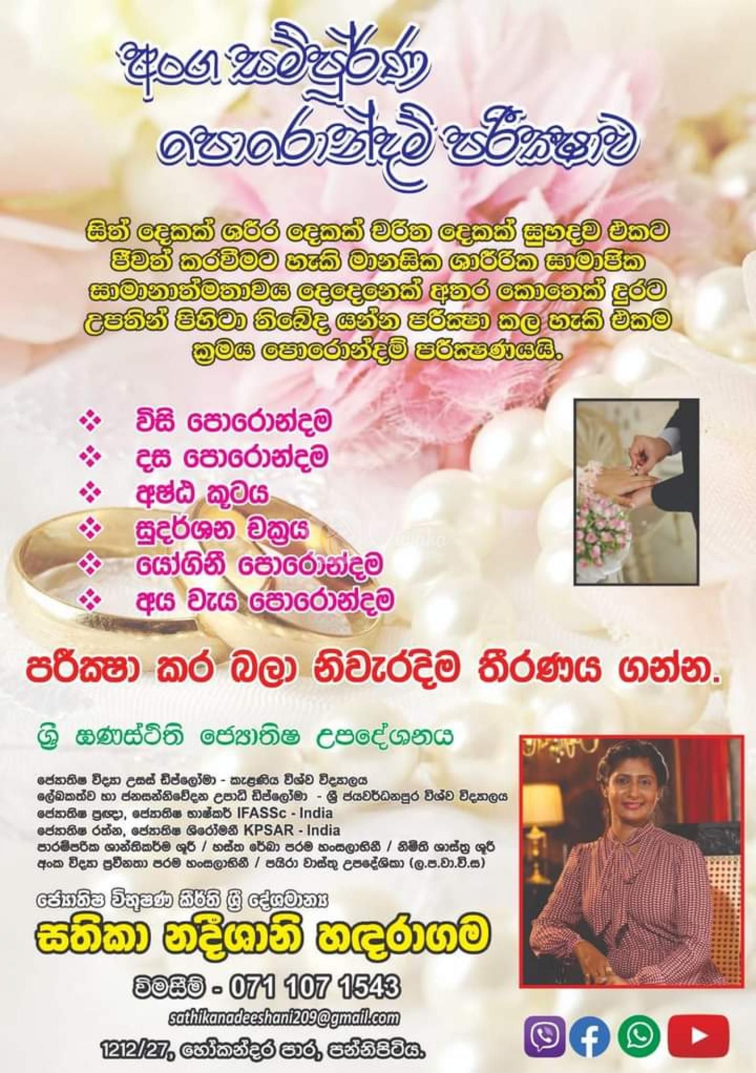 පොරොන්දම් පරීක්ෂාව . ☎️ 0711071543