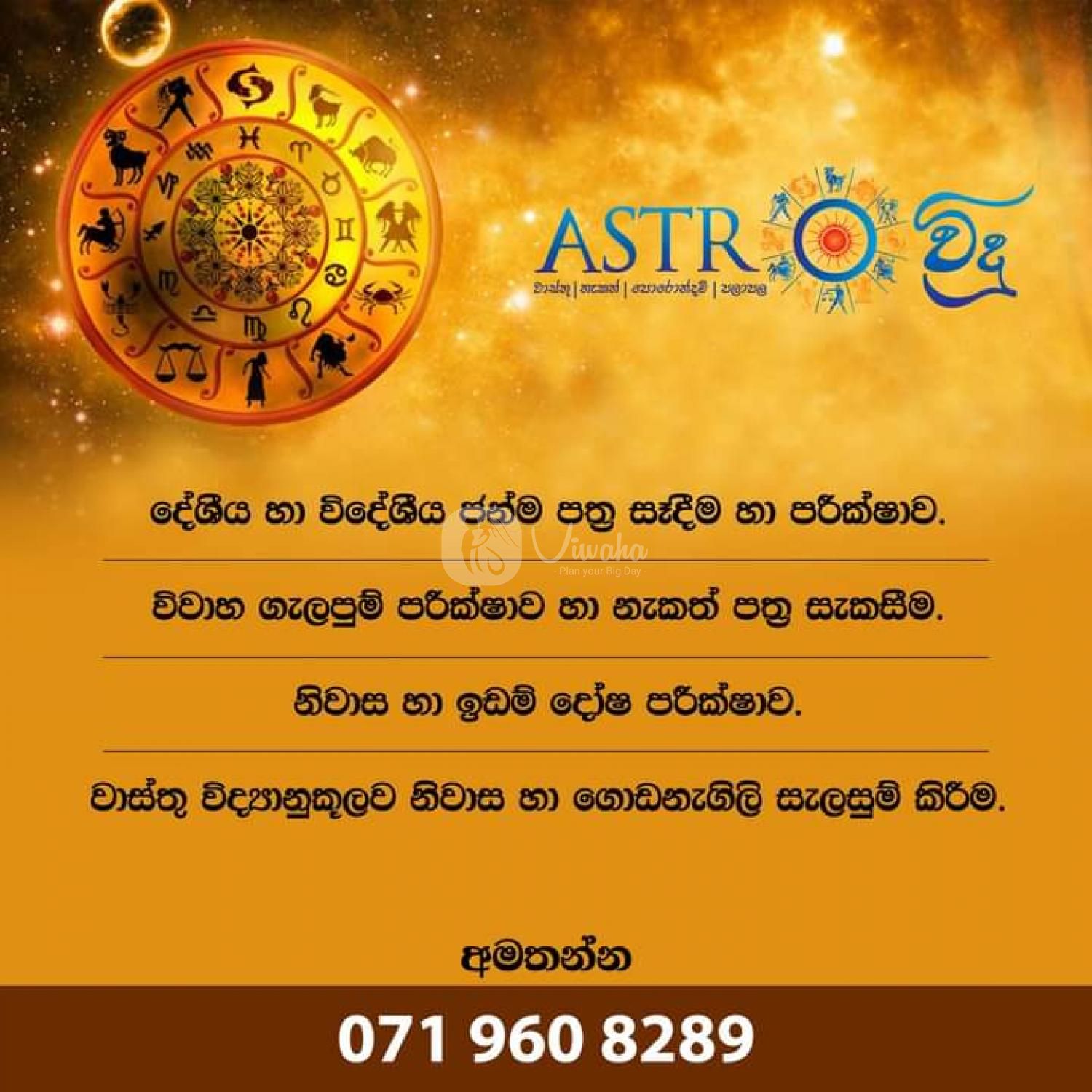 එම නිසා ඔබගේ විශේෂ දිනය චිරාගත සම්ප්රදායානුකූලව සැලසුම් කර ගැනීම සදහා Astrovidu - විදූ අප අමතන්න.